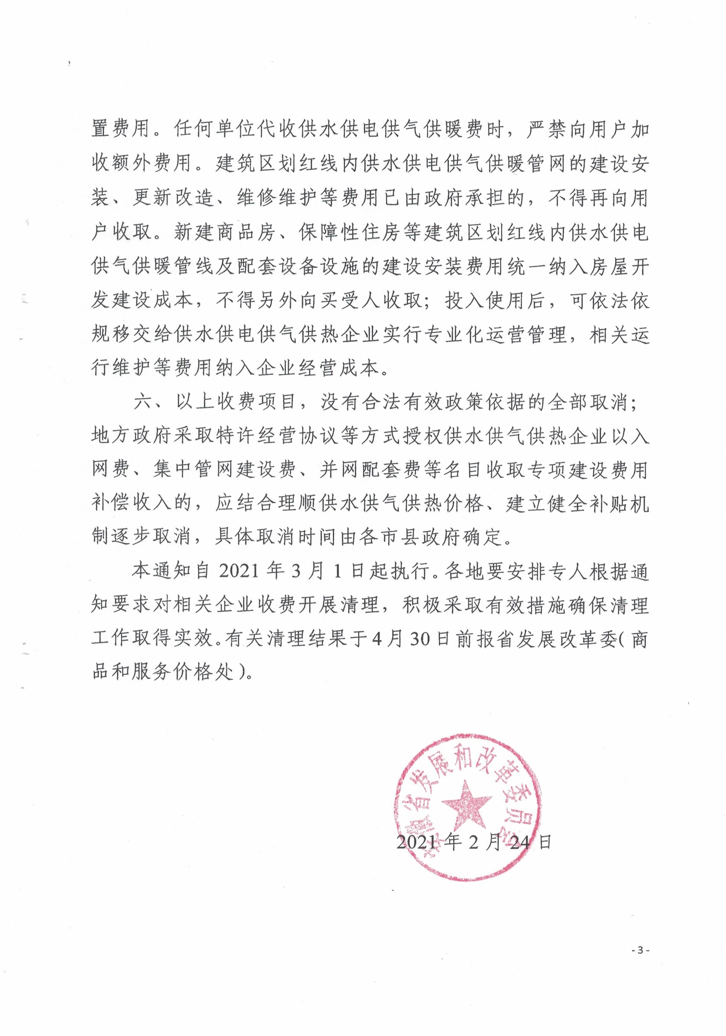 安徽省发展改革委关于清理取消城镇供水供电供气行业有关收费项目的通知