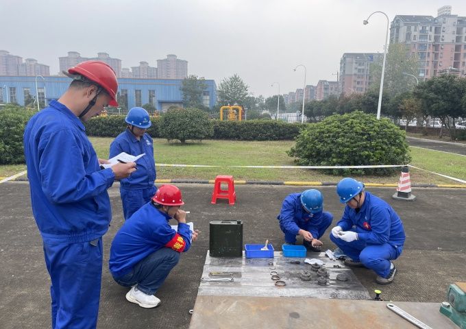 为了提升员工技能,保证场站安全稳定运行,10月31日,清洁能源公司在龙塘加气站举行了以“以赛促学、技护平安”为主题的第六届“技能比武”大赛。