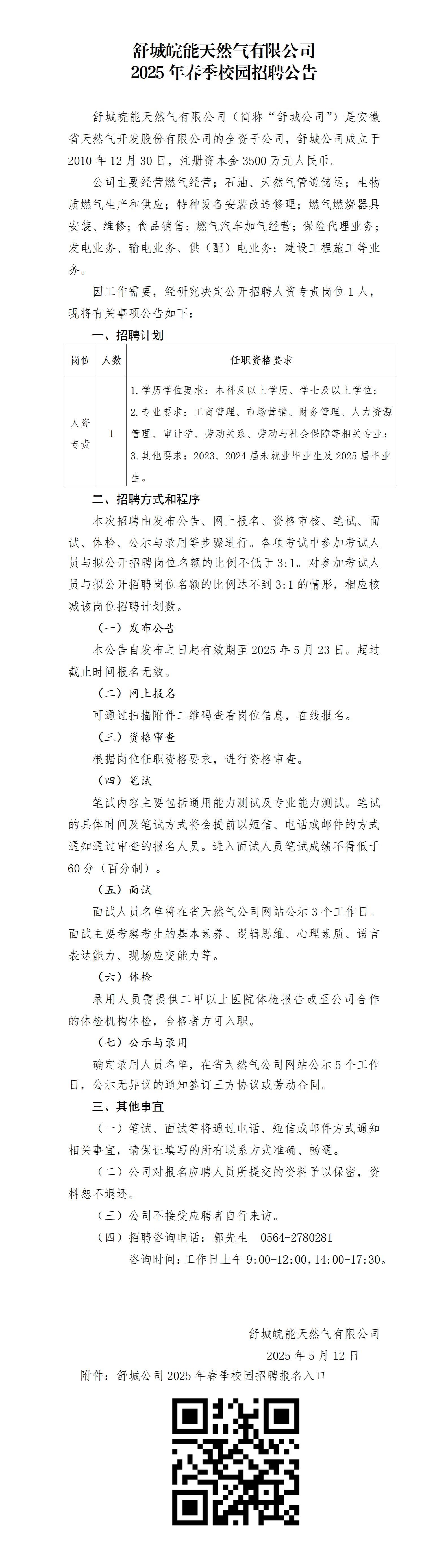 下一条:安徽省天然气开发股份有限公司2025年春季校园招聘公告