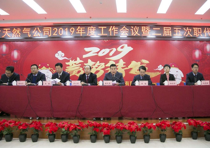 近日,省天然气公司2019年度工作会议暨二届五次职代会在龙塘培训中心召开。集团公司副总经理、省天然气公司党委书记、董事长贾化斌在会上作重要讲话,公司党委副书记、总经理姚礼进作工作报告,会议由公司党委副书记李鲲主持,公司领导周翔、黎延志、朱亦洪、吴海、张先锋,公司中层管理人员、子公司高管、外派挂职人员、职工代表等出席会议。
