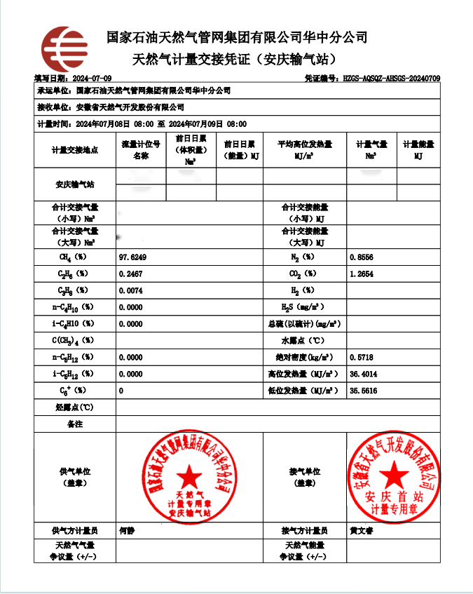 天然气管网设施公平开放信息