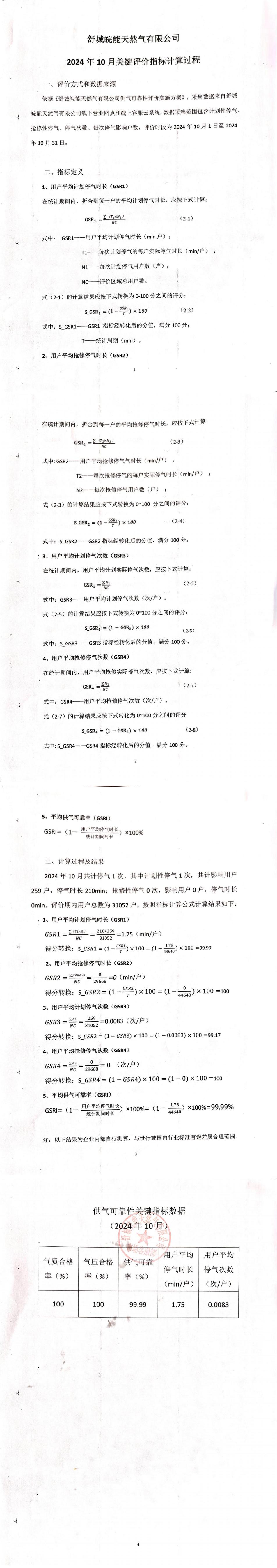 供气可靠性关键指标数据
