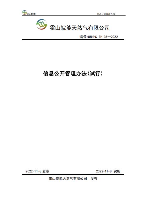 关于印发《霍山皖能天然气有限公司信息公开管理办法(试行)》的通知