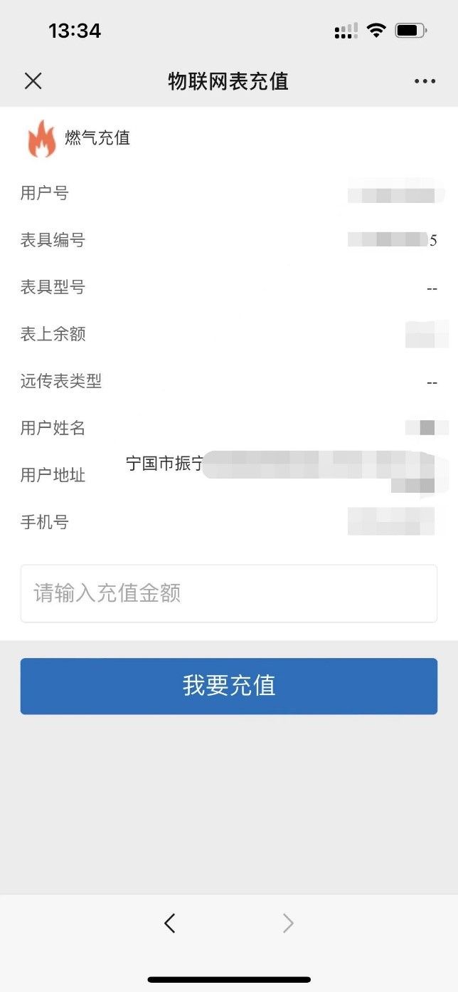点击微信公众号安徽省皖能港华天然气有限公司-选择在线缴费-输入表号和金额
