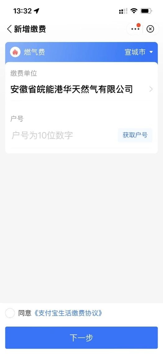点击支付宝生活缴费-选择安徽省皖能港华天然气有限公司-输入户号和金额