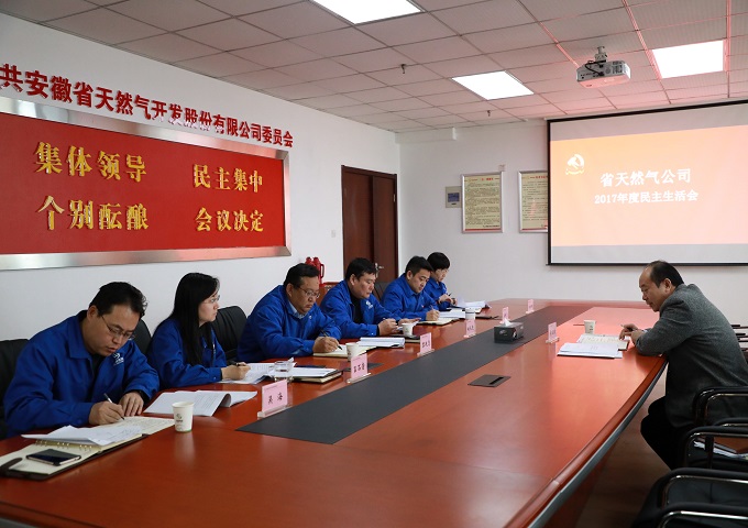 2月9日,省天然气公司召开2017年度民主生活会,集团公司副总经理、省天然气公司党委书记、董事长贾化斌到会指导。