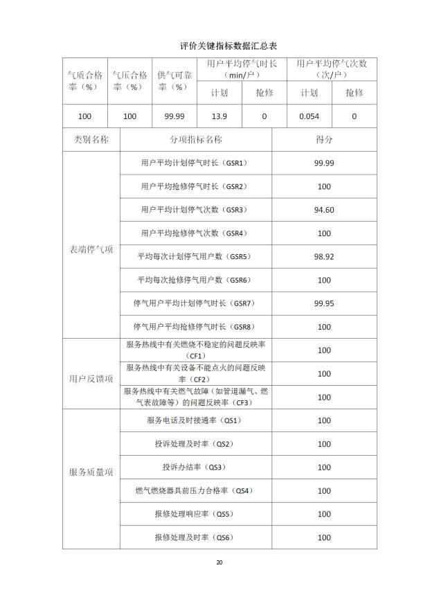 供气可靠性关键指标数据