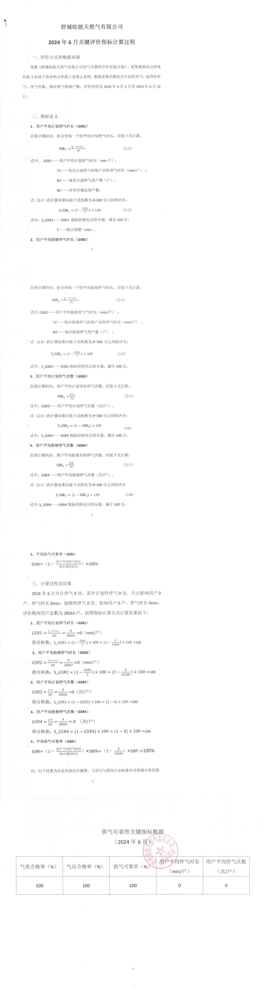 供气可靠性关键指标数据