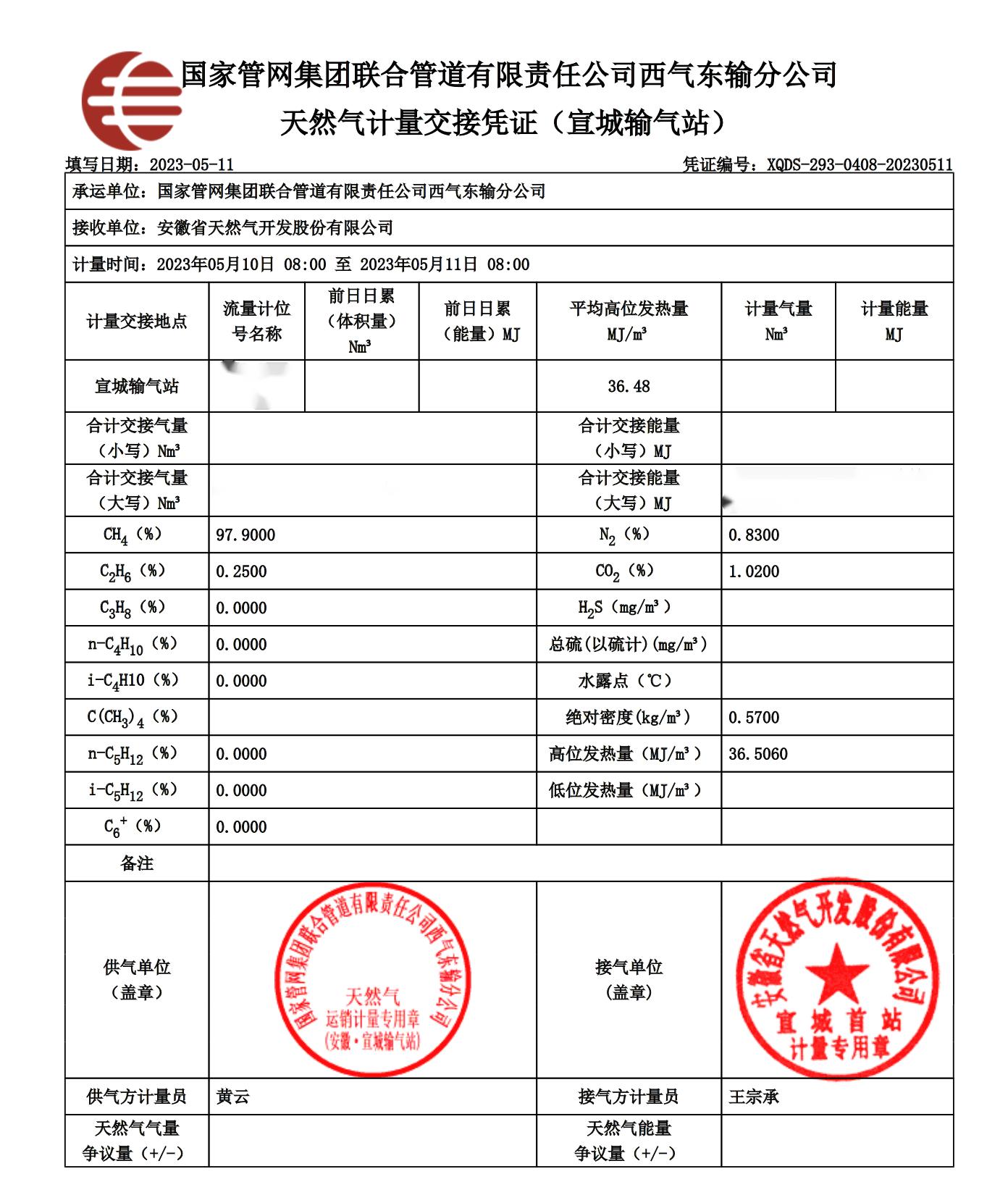 2023年5月11日天然气气质报告